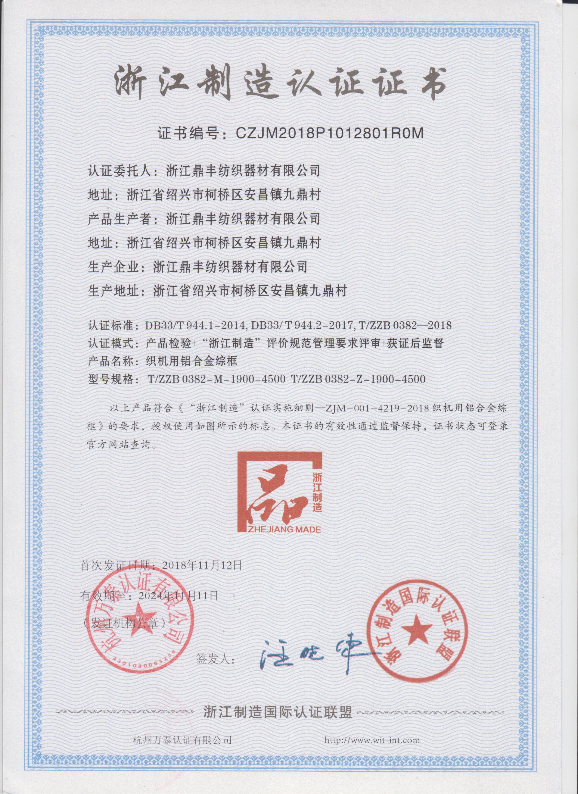 公司現(xiàn)有固定資產(chǎn)6000余萬元,員工300余人,現(xiàn)具有年產(chǎn)噴氣異型筘12萬米,劍桿筘32萬米,噴水筘5萬米,綜框20萬片,鋼片綜2億片,停經(jīng)片1.5億片, 織軸1.2萬套的生產(chǎn)能力。公司“越泉”商標(biāo)被評為“中國馳名商標(biāo)”。公司通過ISO9001 :2015國際質(zhì)量體系認(rèn)證,ISO14001:2015國際環(huán)境管理體系認(rèn)證,ISO45001:2018國際職業(yè)健康安全管理體系認(rèn)證,噴氣織機用鋼筘和織機用鋁合金綜框獲得“浙江制造”品牌認(rèn)證,公司擁有自營進(jìn)出口權(quán),產(chǎn)品暢銷全國并遠(yuǎn)銷印度、巴基斯坦、土耳其、埃及、哥倫比亞、意大利等國家和地區(qū)。
